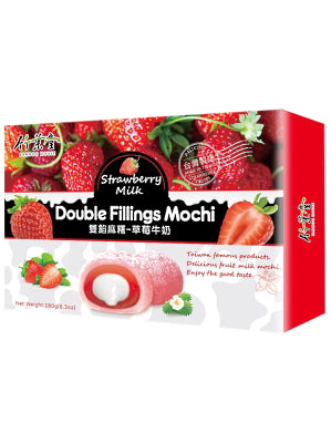 ขนมโมจิญี่ปุ่นรสสตรอเบอรี่ 2 ชั้นสอดไส้นม ขนาด 180 กรัม - ตรา BAMBOO HOUSE